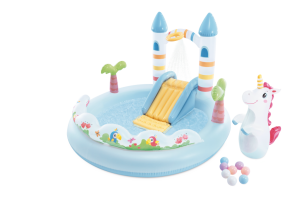 Hracie centrum Jednorožčí hrad je nafukovací herný set určený pre deti od dvoch rokov, ktorý kombinuje zábavu s možnosťou osvieženia v horúcich letných dňoch.