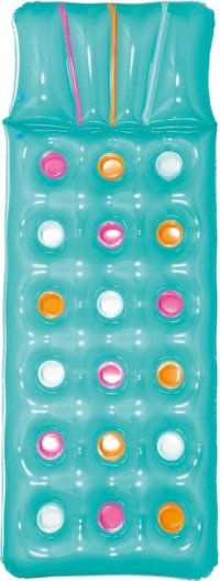 Bestway Lehátko nafukovacieNafukovacie lehátko s farebnou potlačou kvetinovými vzormi as nafukovacím vankúšom má rozmery 183 x 69 cm.