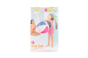Nafukovacia plážová lopta Glossy s gumovým povrchom a farebnými pruhmi je výborný spoločník na pláž, do vody alebo na letné radovánky s deťmi na záhrade.