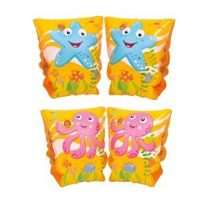 Rukávky nafukovacie detské 23 x 14 cm, mix. rozmery: 23 x 14 cm materiál: vinyl mix dekorov: chobotnica, hviezda Nafukovacie rukávky pre deti od 3 do 6 rokov.