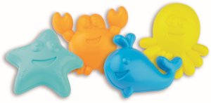 4dielna sada tvorítok na piesok: krab, morská hviezdica, veľryba, chobotnica.