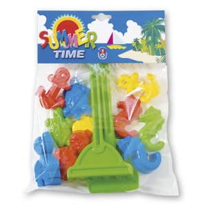12dielna sada na piesok s morskou tematikou, vyrobená v Taliansku z kvalitných plastov.