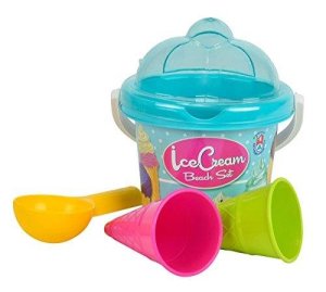 Plastová sada na piesok so zmrzlinovým motívom zabaví deti na piesočnatej pláži aj v parku na pieskovisku.