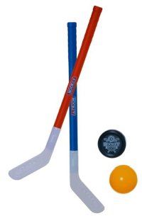 Plastová hokejka pre malých športovcov o veľkosti 72 cm, balenie obsahuje 2 ks a tiež florbalová loptička a puk.