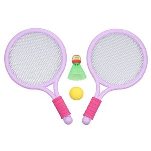 Súprava 2 plastových rakiet a mäkkej loptičky.