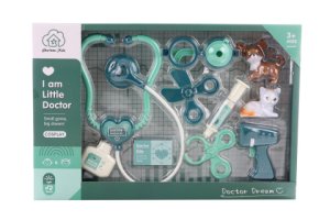 Rozmery balenia: 25x20x7,5 cm Rozmery reflexného kladivka: 12x5x2 cm Vek: 2+ Materiál: recyklovaný plast z fliaš od mlieka Obsahuje: 6 ks nástrojov, 2 sady náplastí a lekársku kartu pacienta