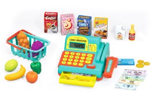 Pokladňa s efektmi modrá. Veľkosť 25x15x18,5 cm.