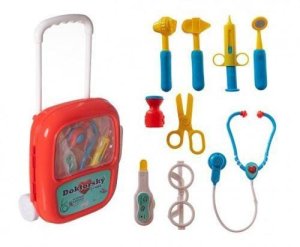 Táto doktorská sada obsahuje napríklad stetoskop, injekciu, misku, lieky, kladivko a ďalšie doplnky.