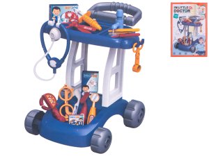 Hračka v podobe elektronického lekárskeho vozíka so zvukmi, EKG modul so zvukovými efektmi, bohaté príslušenstvo, 2 kolieska pre jednoduchú manipuláciu, pre deti od 3 rokov.