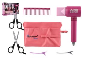 Táto sada pre malé kaderníčky obsahuje fén na batérie, žehličku na vlasy, nožnice hrebeň, natáčky, vreckár a mnoho ďalších doplnkov.
