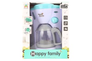 Plastová sada obsahuje kávovar na batérie, tortičky, 2 hrnčeky, podšálku a lyžičku.