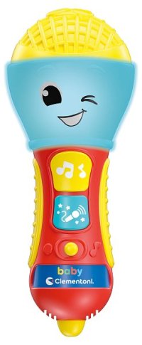 Detský mikrofón je imitácia hračky fungujúca ako skutočná: stlačením modrého tlačidla zosilní detský hlas.
