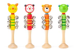 Rolničky WOODY Rolničky Zvieratká 6 rolničiek umiestnených na drevenej paličke s hlavičkou zvieratka Zvuk rolničiek rozozvučí každú pesničku Hračka rozvíja rytmus a hudobný sluch Na výber zo 4 zvieracích motívov …