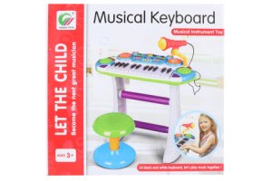 Plastové piano so stoličkou. Na piane je možné okrem klasických tónov tiež navoliť rôzne podkresové melódie, meniť hudobné nástroje a nahrávať svoju hudbu.