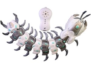 Robotická stonožka, diaľkové ovládanie, svetelné a dymové efekty, demo režim, USB nabíjanie, 53×15×5 cm.