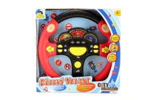 Volant o veľkosti cca 24 cm so svetelnými a zvukovými efektmi - klaksón, štartovanie, blikanie a zvuk smerového svetla, hudba, zvuky bŕzd, Detský volant s českým hlasem.Provoz na 3 batérie AA.Věk 3+