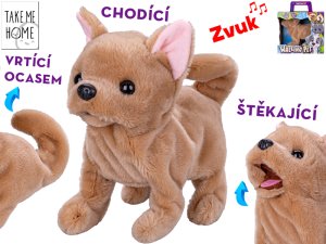 Plyšové šteniatko na kábel, šteká, chodí, vrtí chvostíkom, veľkosť 20 cm, 2 druhy - Čivava a Husky.