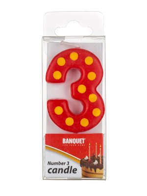 Sviečka narodeninová - číslo 3, veľkosť sviečky 5 x 3 cm, súčasťou sviečky je plastový bodec.