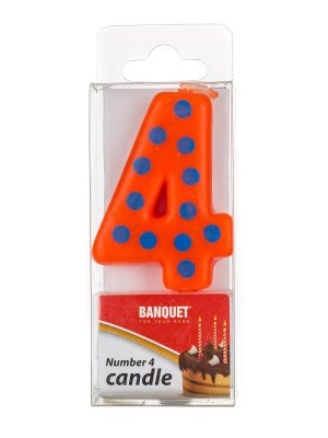 Sviečka narodeninová - číslo 4, veľkosť sviečky 5 x 3 cm, súčasťou sviečky je plastový bodec.
