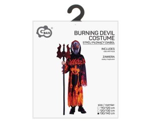 Kostým Diabol s kapucňou pre chlapcov vo veľkosti 130/140 cm predstavuje výrazný karnevalový outfit vhodný pre detské maškarné alebo tematické párty.