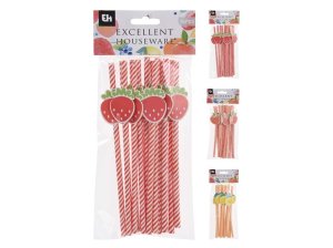 Papierová párty slamky s motívom ovocia, 16 ks, 110×255 mm, mix druhov.