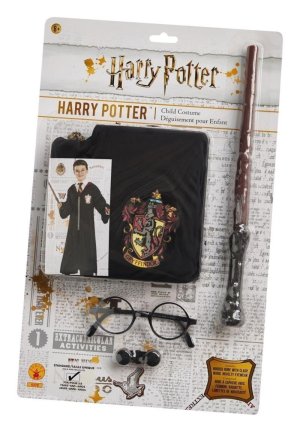 Školská uniforma, prútik a okuliare Harryho Pottera, kúzelníka z Rokfortu. Harry Potter opúšťa svet Muklov a vydáva sa do školy čiar a kúziel - do slávnych Rokfortu.