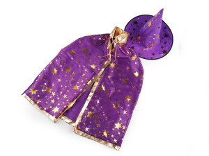Detský čarodejnícky karnevalový kostým sa skladá z klobúka a plášťa.