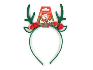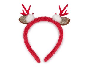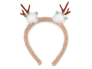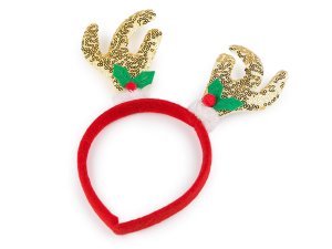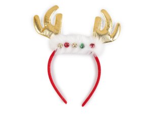 Párty čelenku zdobia malé zamatové parôžky s ďalšími vianočnými prízdobami.