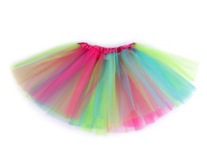 Roztomilá saténová sukienka TUTU je zdobená farebným tylom s dekorom hviezdičiek.