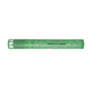 Konfetové delo s balením papierových konfiet v tvare futbalových lôpt.
