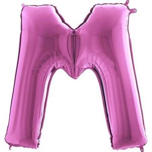 Ružový balónik písmeno M. Balónik je vyrobený z pevnej fólie.