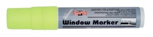 Značkovač na okná s tekutou kriedou žltý, so žltým uzáverom, plochý hrot, šírka stopy 2 - 15 mm.