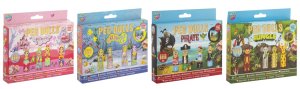 Kreatívna súprava na výrobu drevených panáčikov – súprava obsahuje 4 drevené panáčiky 6,5 cm, 1 aršík samolepiek, 6 vodových farieb, 2 štetce a 1 pozadie.