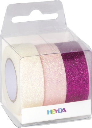 Sada samolepiacich trblietavých papierových pások vo farbách tmavo ružová, ružová a perleťová ružová.