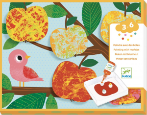 Mramorové obrázky s pomocou sklenených guličiek a farbičiek.