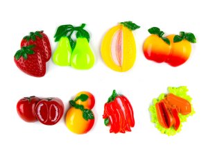 8dielna sada ozdobných magnetiek APETIT na chladničku s motívom ovocia a zeleniny.