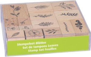 Sada 15 ks drevených pečiatok s motívmi lístkov, stoniek a rastliniek.