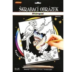 Škrabací obrázok dúhový 20 x 25 cm Sada obsahuje obrázok natlačený na čiernom kartóne a umelohmotné škrabacie pero.