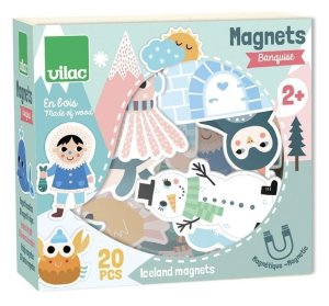 Súprava dvadsiatich drevených magnetov s ilustráciami Michelle Carlslund v motívoch zimy a severu. Rozmery balenia: 15 x 14 x 6 cm Rozmery snehuliaka: cca. 7,5 x 4,5 cmVek: 2+Materiál: drevo, magnetObsahuje 20 ks