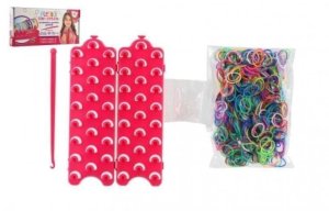 Tkáčsky stav na splietanie gumičiek môžu deti využiť na výrobu náramkov, gumičiek do vlasov alebo napríklad originálne kľúčenky.