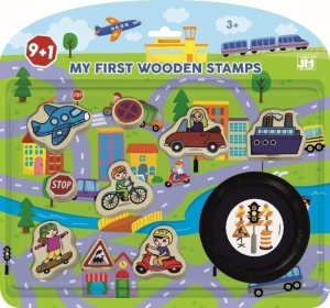 Set obsahuje 5 ľahko uchopiteľných drevených pečiatok, farebnú podušku s obľúbeným motívom a sedemfarebnú skladaciu voskovku na vyfarbovanie.