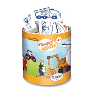 Pečiatky Aladine Stampo Minos - Stroje obsahujú 10 ks detských tematických pečiatok z mäkkej peny pre ľahké a zábavné tvorenie.