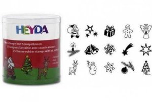 Set obsahuje 12 motívov. Pečiatky sú upevnené na drevenom bloku.