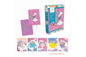 Balenie obsahuje: 10 kusov zoškrabávacích obrázkov, drevené škrabátko v tvare ceruzky s hrotom a farebný návod.