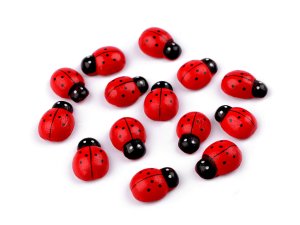 Drevené lienky majú na spodnej strane samolepiacu penovú bodku.