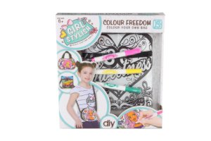 Vyfarbovacie kabelka obsahuje 4 špeciálne fixky určené pre vyfarbovania textilu a ozdobné kamienky.