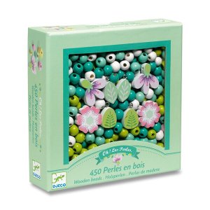 Kreatívna súprava 450 ks rôznych druhov drevených korálikov a príveskov v tvare listov a kvetov, z ktorých je ľahké navliekať originálne šperky.