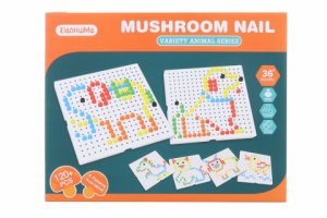 Mozaika pre mladšie deti. Obsahuje 48 gombíkov O 3 cm v celkom 6 farbách, 8 vzorových obojstranných kariet a transparentnú dosku s otvormi v inovovanom dizajne s rukoväťou pre ľahké prenášanie.