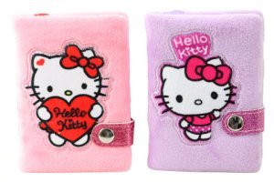Plyšový mini zápisník s motívom mačičky Hello Kitty s klipom.