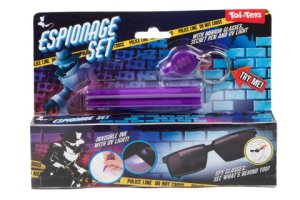 Sada pre malé špióny obsahuje 2 kúzelné perá, UV svietidlo (napájanie na 3xAG13 batérie - sú súčasťou balenia) a špeciálne okuliare, vďaka ktorým uvidí malý špión, čo je za ním.
